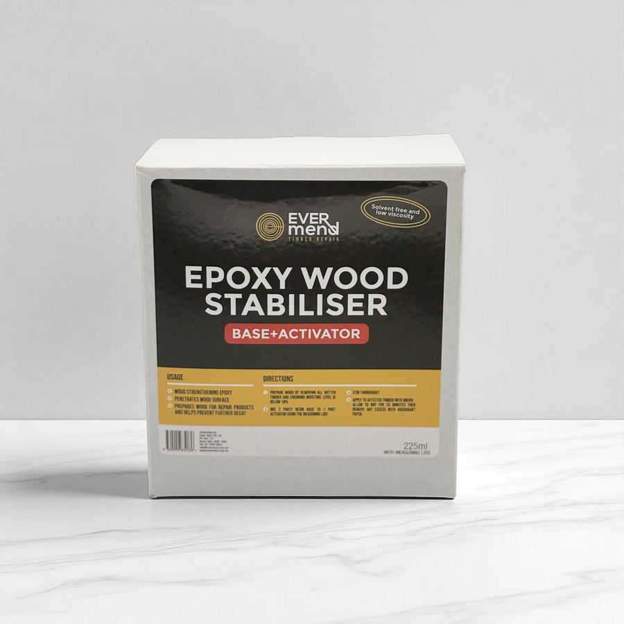 Evermend Wood Stabiliser is a premium, low-viscosity, solvent-free, two-part epoxy primer specially formulated for use with the Evermend Epoxy Wood Repair system. Designed to penetrate deeply into timber, this stabiliser strengthens soft, weakened, or partially decayed wood, reinforcing the substrate before repair.